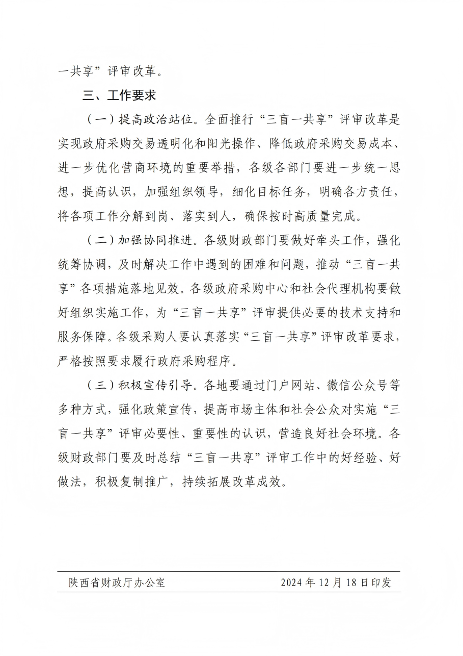 关于印发《陕西省政府采购领域“三盲一共享”评审实施方案》的通知
